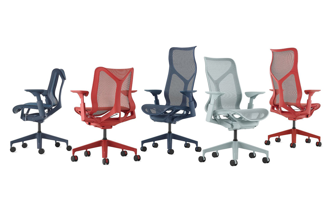 Cosm整體采用一種色調(diào),進(jìn)一步加強(qiáng)設(shè)計(jì)的統(tǒng)一性,凸顯這款座椅雕塑般的品質(zhì)。設(shè)計(jì)師與Herman Miller的材料團(tuán)隊(duì)合作,確定了三種浸染的色調(diào)——峽谷紅、冰川藍(lán)和夜暮藍(lán)。